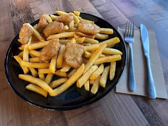 Chicken nuggets chips & pop top drink