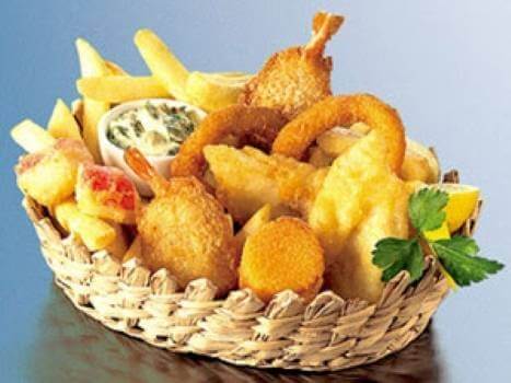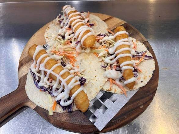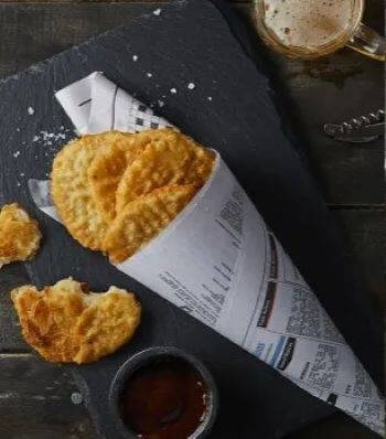 1X Battered barramundi, 2X potato cakes. 2X panko prawns, 2X panko calamari, 2X crumbed scallop. 2X battered crab sticks . 2X onion rings, comes with crispy chips and sauces
