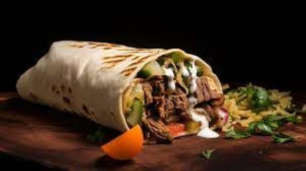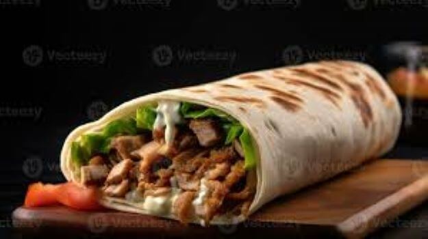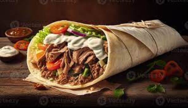 Marinated lamb fillets, lettuce, tomato onion & garlic sauce