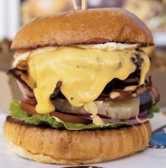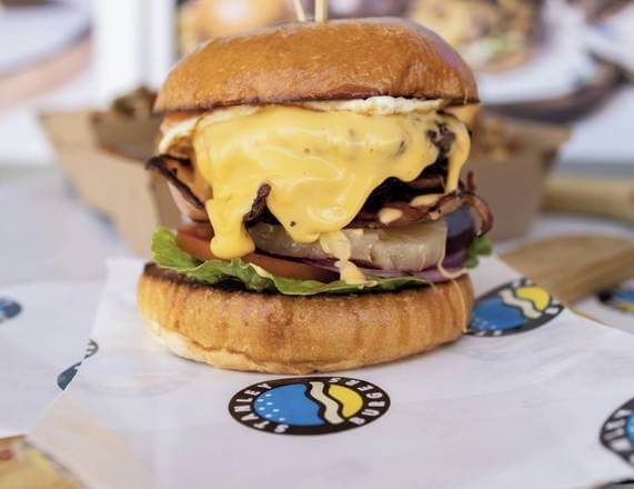 Homemade Angus Beef Patty, American Cheese, Bacon, Egg, Pineapple, Lettuce, Red Onion, Tomato Sauce, Served In A Gluten Free Bun